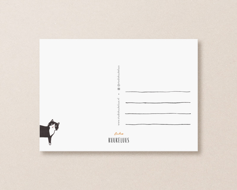 • ruimte voor een bericht, adres en postzegel op de achterzijde