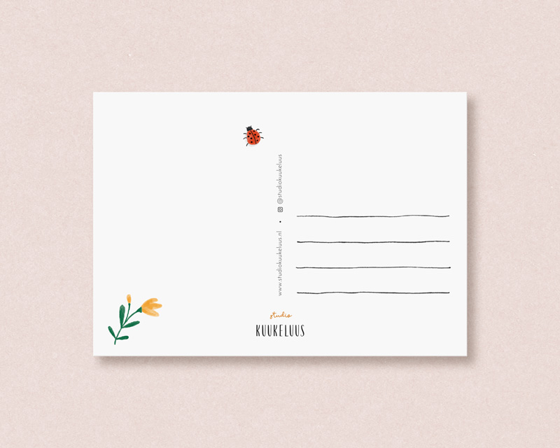 • ruimte voor een bericht, adres en postzegel op de achterzijde