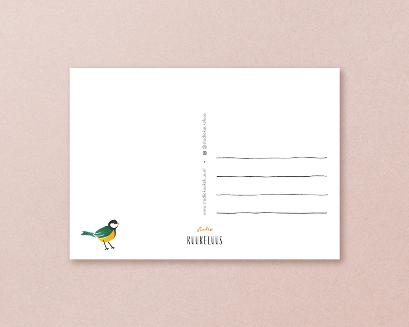• ruimte voor een bericht, adres en postzegel op de achterzijde