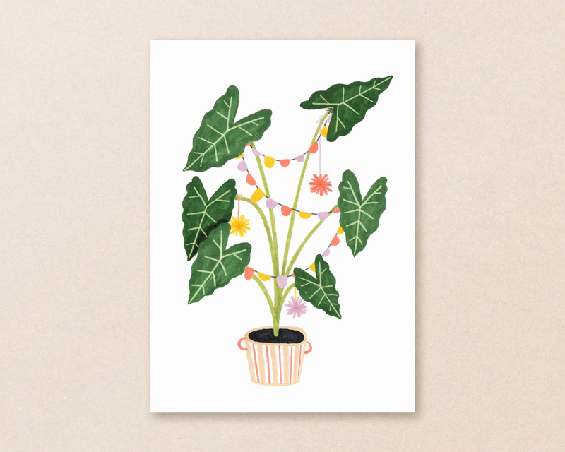 Vier een verjaardag, verhuizinig of ander feest met deze vrolijk versierde Alocasia plant.