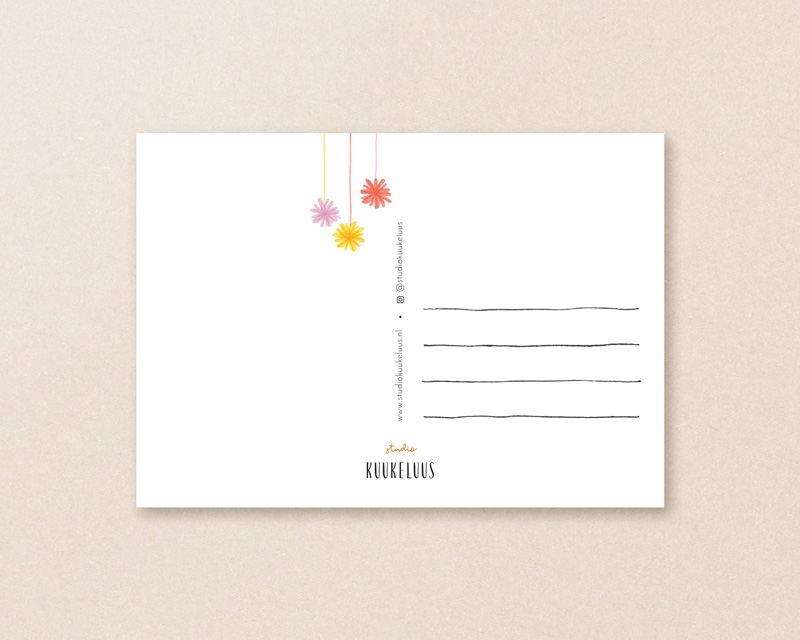 • ruimte voor een bericht, adres en postzegel op de achterzijde