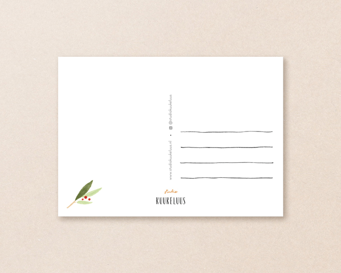 • ruimte voor een bericht, adres en postzegel op de achterzijde