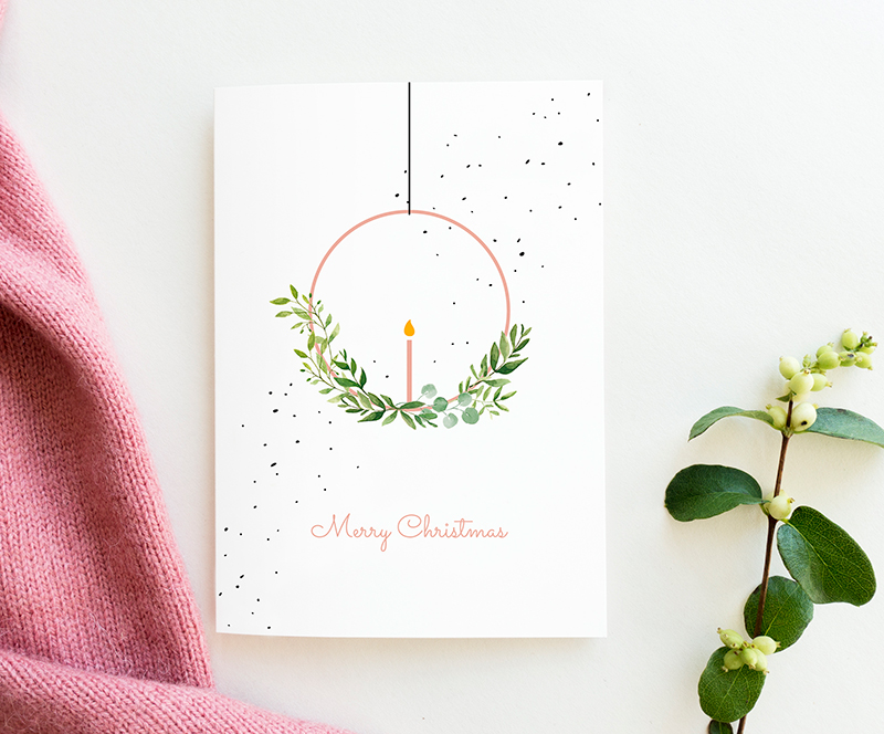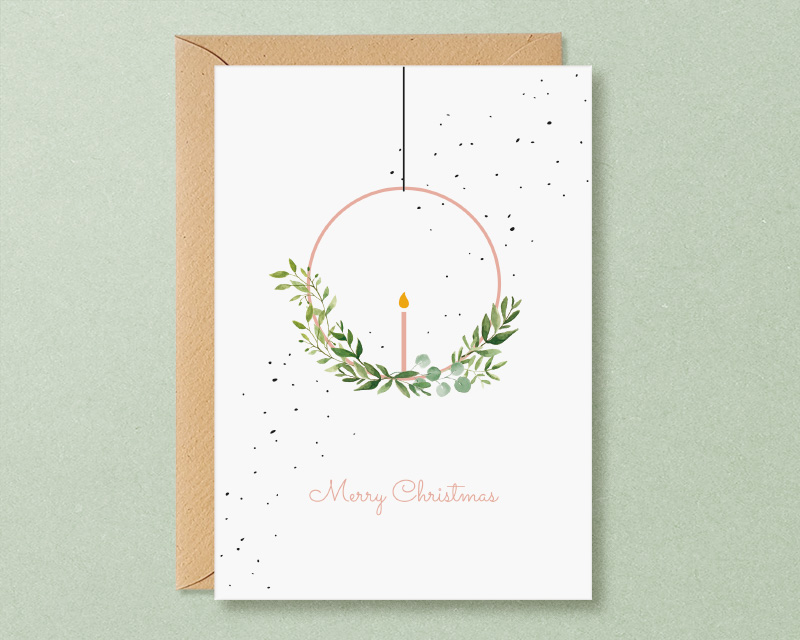 Deze kerstkaart met handgemaakte aquarel illustraties heeft een lichte en frisse uitstraling. Een tikje klassiek, maar in een modern jasje.