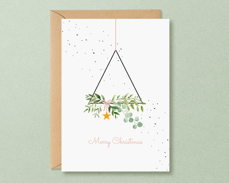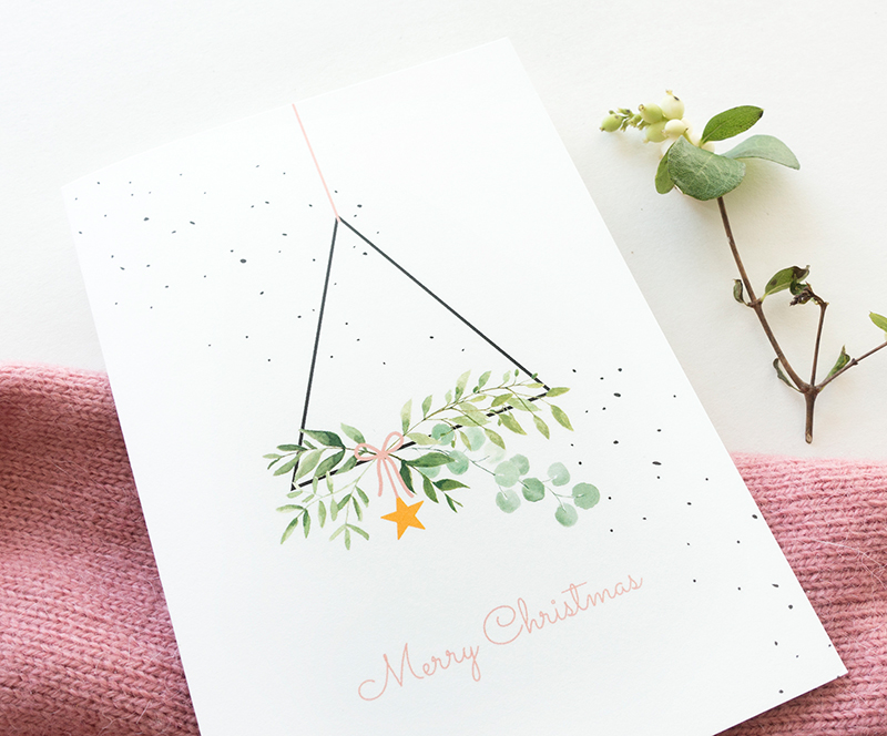 Deze kerstkaart met handgemaakte aquarel illustraties heeft een lichte en frisse uitstraling. Een tikje klassiek, maar in een modern jasje.
